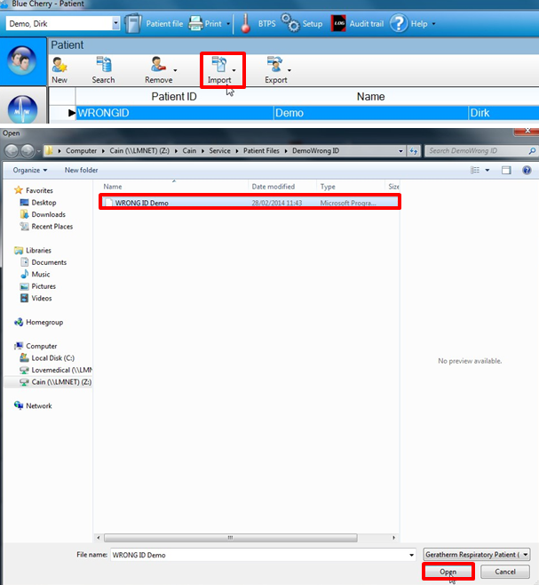 Locate and import the Patient you have just exported.