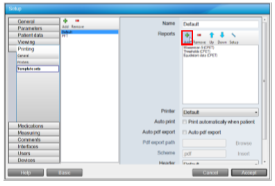 13. In the Scheme section click the ‘insert’ button and click on the parameters to name the PDF (e.g. <Patient ID><Name><First Name>.pdf = 1DemoDirk.pdf).