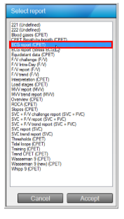 9. From the list shown select ‘ECG report (CPET)’ then click ‘Accept’