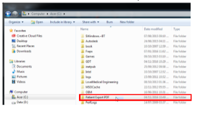11. On the local drive create the folder ‘Patient Export PDF’.