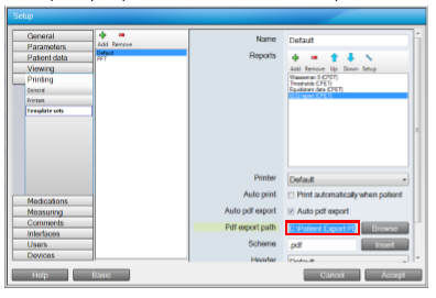12. In the ‘pdf export path’ select the file C:\Patient Export PDF